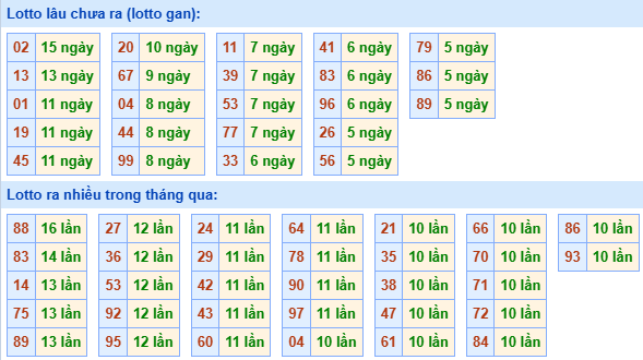 Bảng tần suất loto miền Bắc 02/12