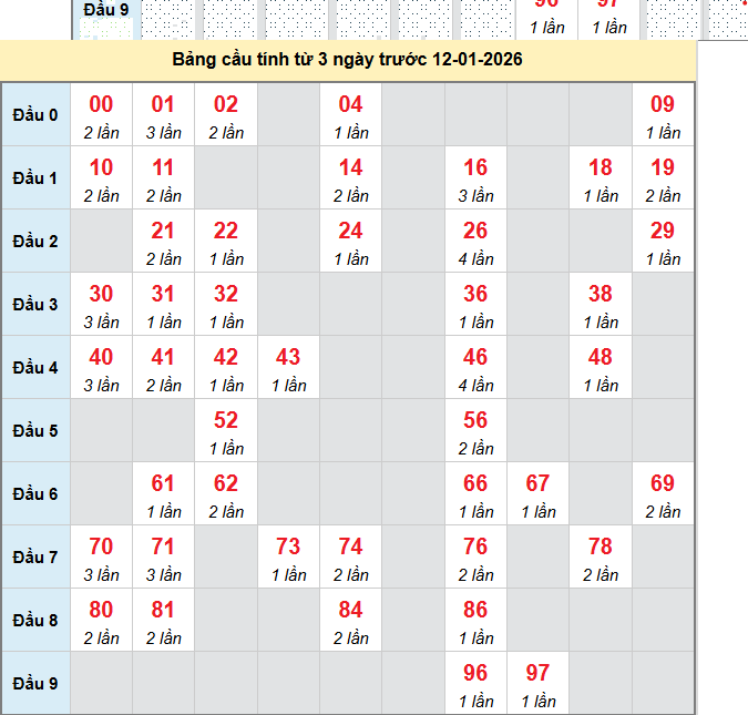 Thống kê XSDT ngày 12/01/2026: