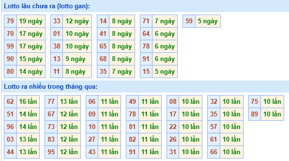 💰 Lô tô gan lâu ra nhất: 79 - 70 - 99