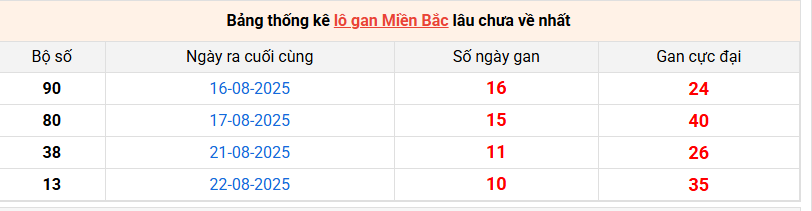 💰 Lô tô gan lâu ra nhất: 90 - 80 - 38