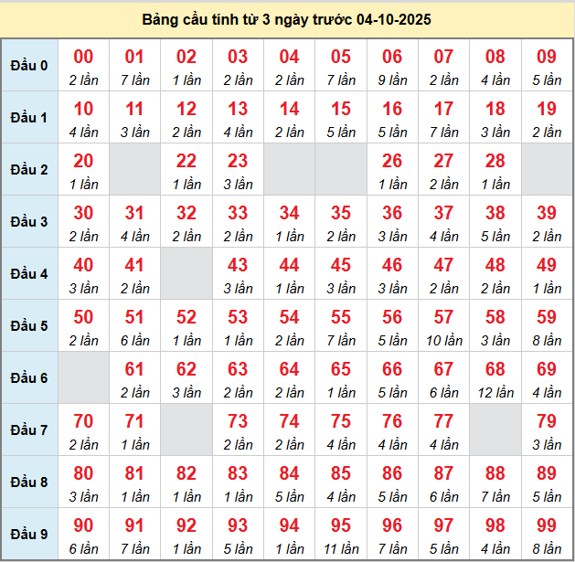 Bảng tần suất loto miền Bắc 04/10