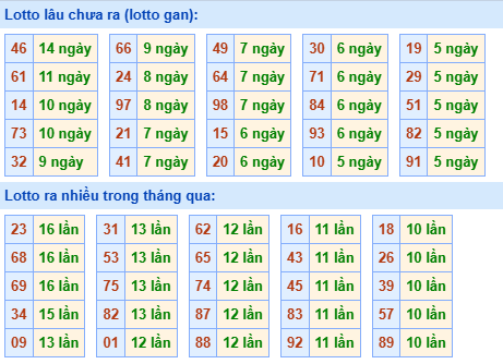 💰 Lô tô gan lâu ra nhất: 46 - 61 - 14
