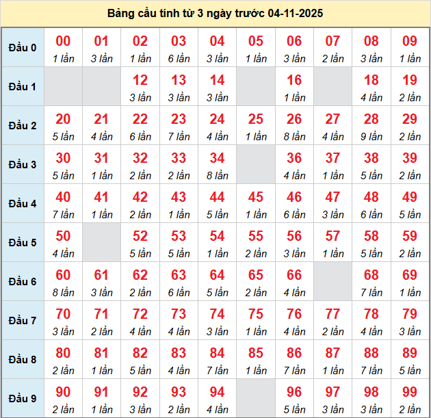Bảng tần suất loto miền Bắc 04/11