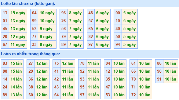 ⇒ Xem bảng tần suất lô tô các cặp số từ 00 đến 99 của đài miền Bắc trong tháng tại: Thống kê lô cặp