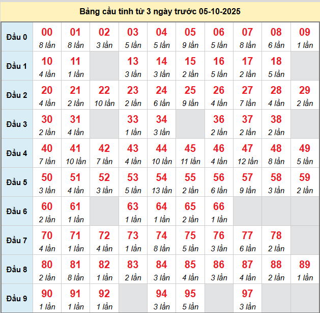 🍀 2. Thống kê lô tô miền Bắc ngày 05/10/2025 :