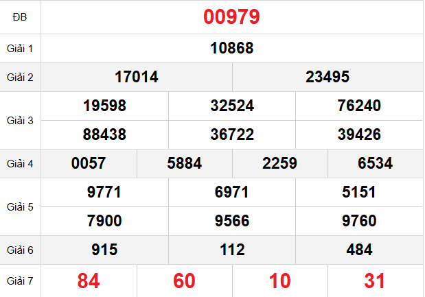 💰 2 số cuối giải đặc biệt miền Bắc trong tuần trước: 12 - 30 - 39 - 35 - 79 - 33 - 43