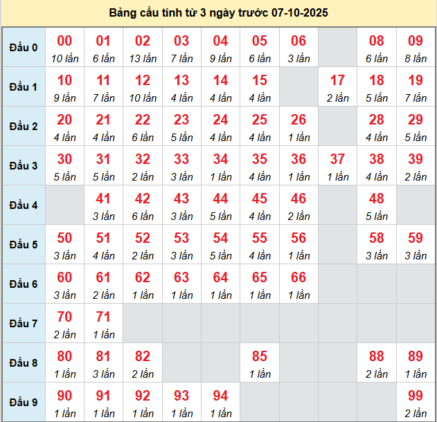 🍀 2. Thống kê lô tô miền Bắc ngày 07/10/2025 :