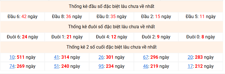 💰 Thống kê 2 số cuối GĐB lâu về nhất tính đến hôm nay: 10 - 41 - 26 - 67 - 20