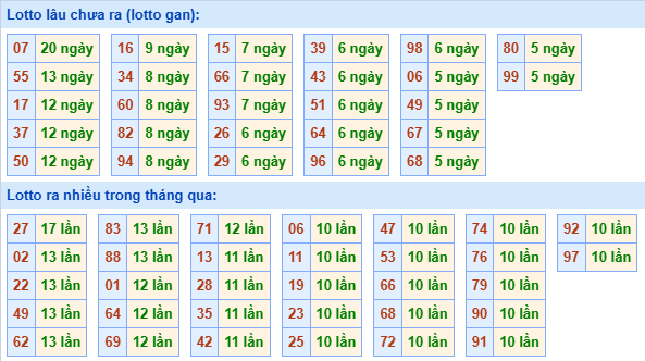 ⇒ Xem bảng tần suất lô tô các cặp số từ 00 đến 99 của đài miền Bắc trong tháng tại: Thống kê lô cặp