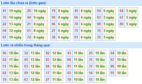 💰 Lô tô gan lâu ra nhất: 41 - 76 - 22