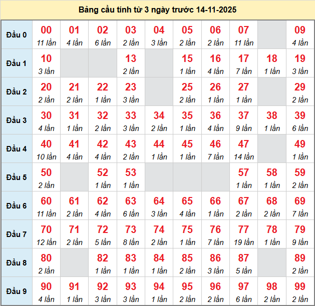 Thống kê miền Bắc hôm nay sẽ đưa ra cho người chơi những bộ số về trong thời gian gần đây để lựa chọn cặp số may mắn ngày 14/11/2025, cụ thể: