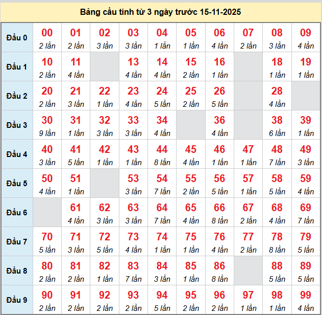 Thống kê miền Bắc hôm nay sẽ đưa ra cho người chơi những bộ số về trong thời gian gần đây để lựa chọn cặp số may mắn ngày 15/11/2025, cụ thể: