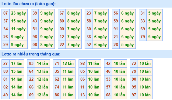 ⇒ Xem bảng tần suất lô tô các cặp số từ 00 đến 99 của đài miền Bắc trong tháng tại: Thống kê lô cặp