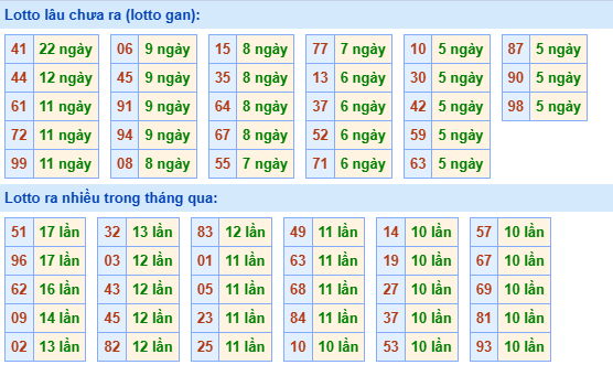 💰 Lô tô gan lâu ra nhất: 41 - 44 - 61