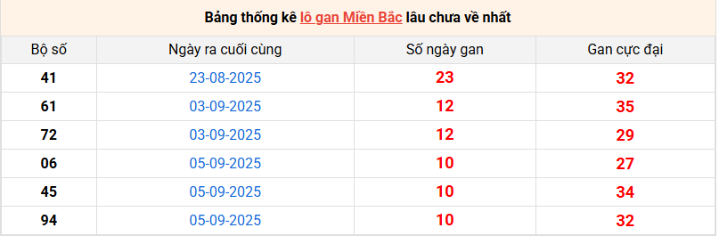 Bảng lô gan miền Bắc lâu chưa về tính đến 16/9/2025