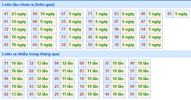 💰 Lô tô gan lâu ra nhất: 41 - 61 - 72