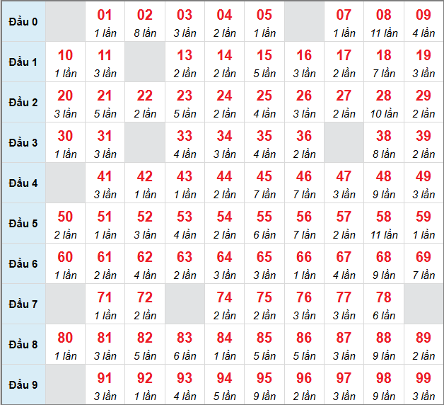 ⇒ Xem bảng tần suất lô tô các cặp số từ 00 đến 99 của đài miền Bắc trong tháng tại: Thống kê lô cặp