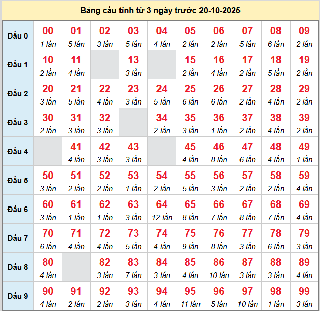 🍀 2. Thống kê lô tô miền Bắc ngày 20/10/2025 :