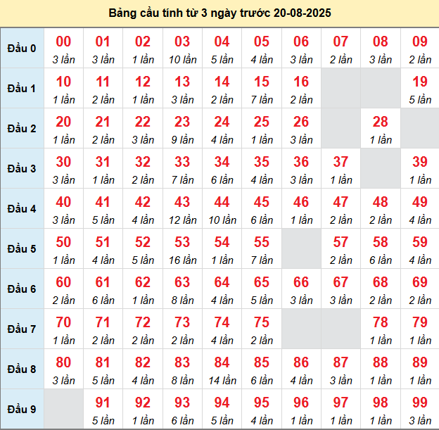 Lưu ý: Trên đây những dự đoán miền Bắc ngày 20/8/2025 chỉ mang tính chất tham khảo, cảm ơn các bạn đã tin tưởng. Chúc các bạn may mắn!
