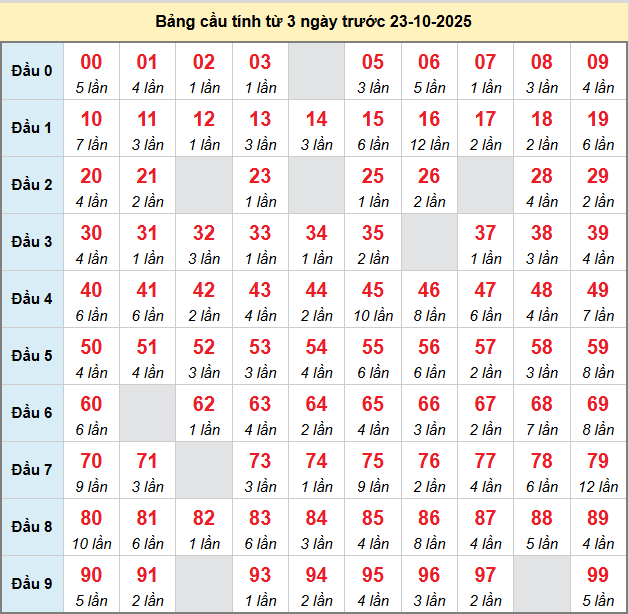 Lưu ý: Trên đây những dự đoán miền Bắc ngày 23/10/2025 chỉ mang tính chất tham khảo, cảm ơn các bạn đã tin tưởng. Chúc các bạn may mắn!