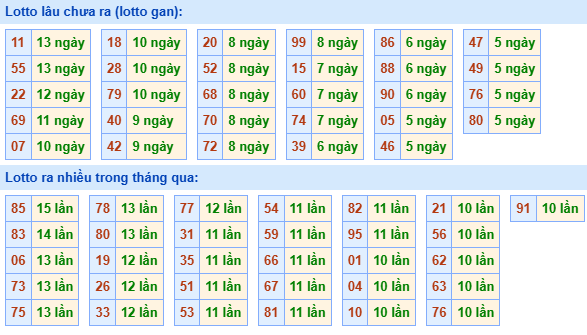 💰 Lô tô gan lâu ra nhất: 11 - 55 - 22