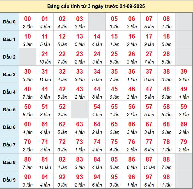 Bảng tần suất loto miền Bắc 24/9