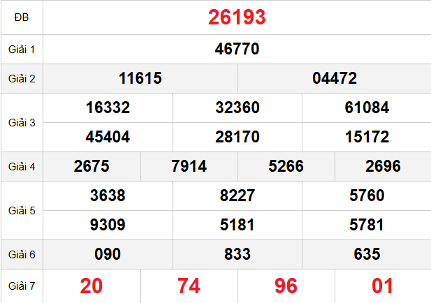 💰 2 số cuối giải đặc biệt miền Bắc trong tuần trước: 05 - 50 - 46 - 90 - 71 - 61 - 88