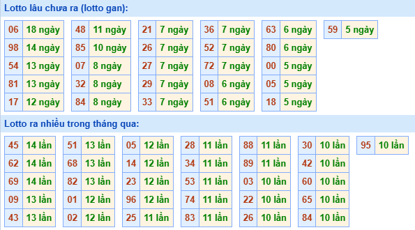 ⇒ Xem bảng tần suất lô tô các cặp số từ 00 đến 99 của đài miền Bắc trong tháng tại: Thống kê lô cặp