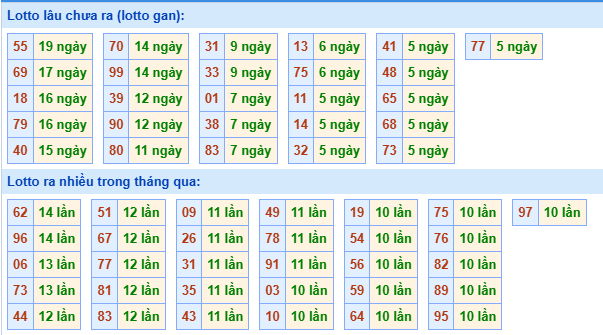 💰 Lô tô gan lâu ra nhất: 55 - 69 - 18