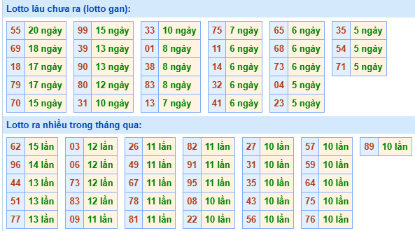 💰 Lô tô gan lâu ra nhất: 55 - 69 - 18