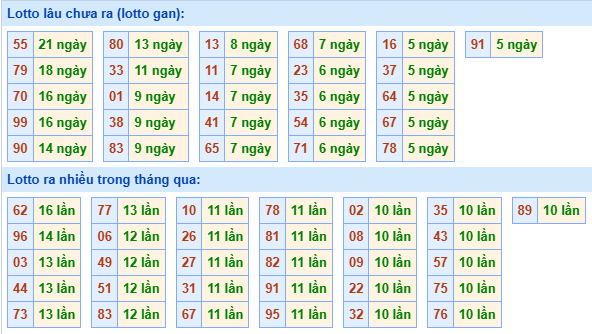 💰 Lô tô gan lâu ra nhất: 55 - 79 - 70