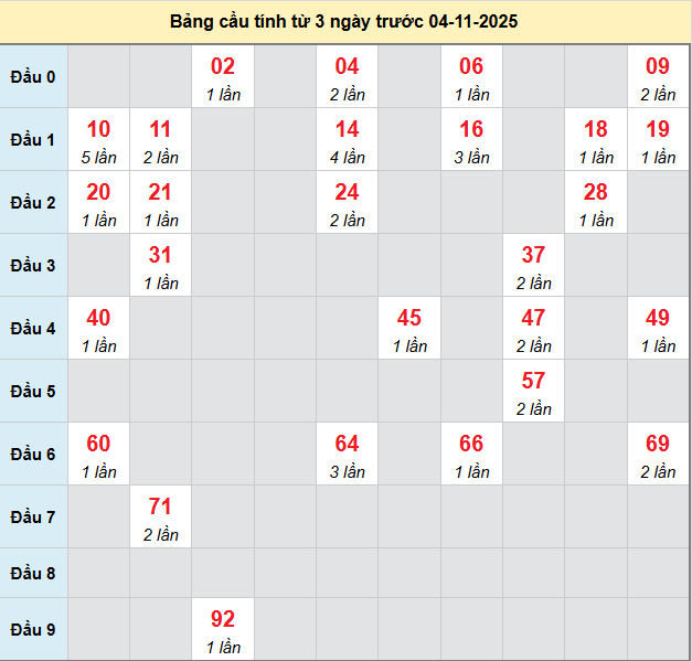Bạch thủ rơi 3 ngày lô XSVT 04/11/2025