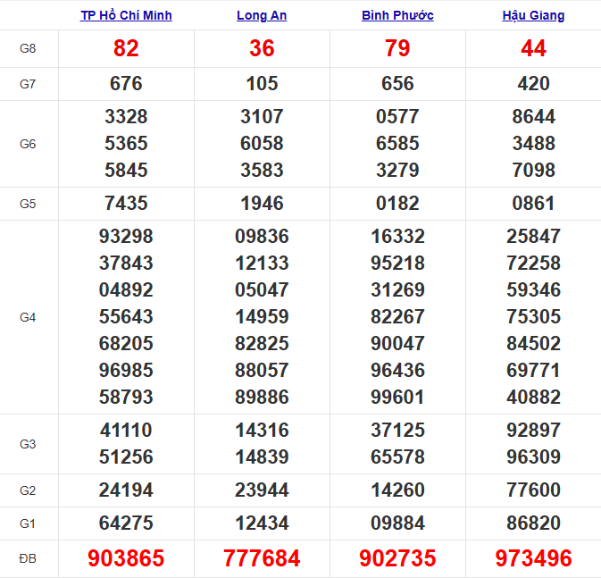 Soi cầu lô bạch thủ Hậu Giang ngày 06/9/2025: