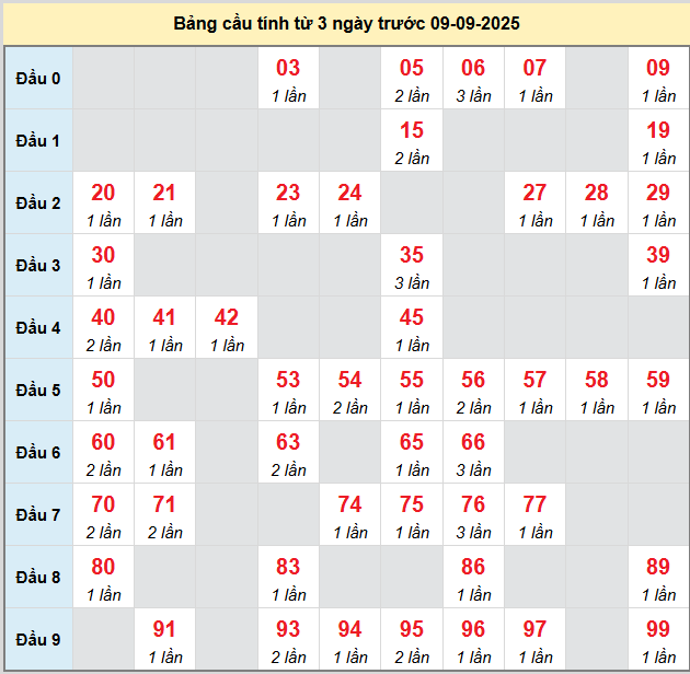 Bạch thủ rơi 3 ngày lô XSVT 09/9/2025