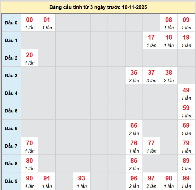 Bạch thủ rơi 3 ngày lô XSCM 10/11/2025
