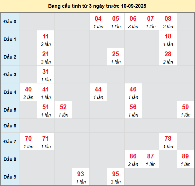 Bạch thủ rơi 3 ngày lô XSCT 10/9/2025