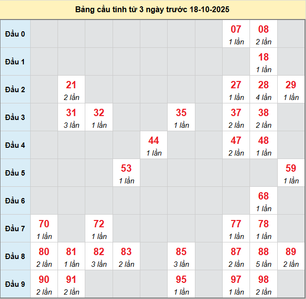 Bạch thủ rơi 3 ngày lô XSHG 18/10/2025