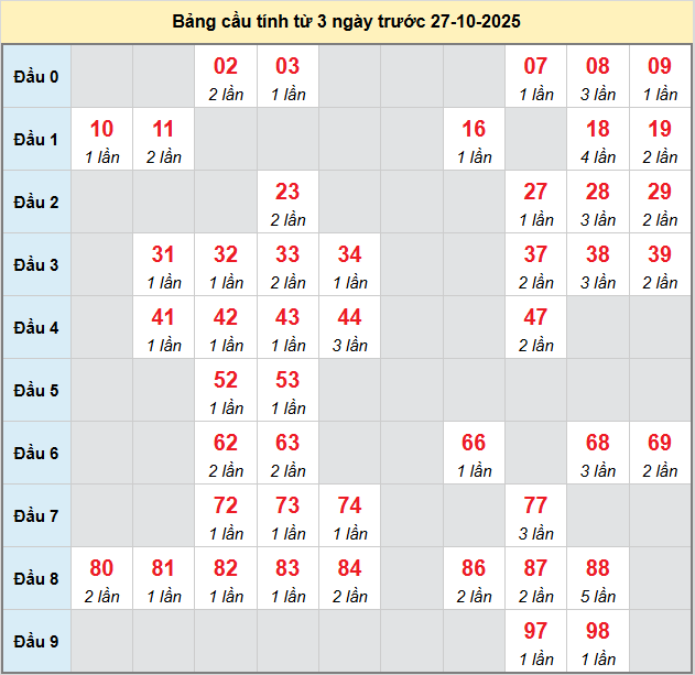 Bạch thủ rơi 3 ngày lô XSDT 27/10/2025