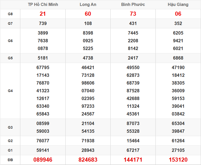 💰 Thống kê giải tám Hậu Giang: 55 - 83 - 06 - 30 - 50 - 98 - 46