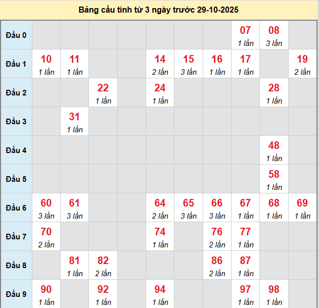 Soi cầu lô bạch thủ Cần Thơ ngày 29/10/2025: