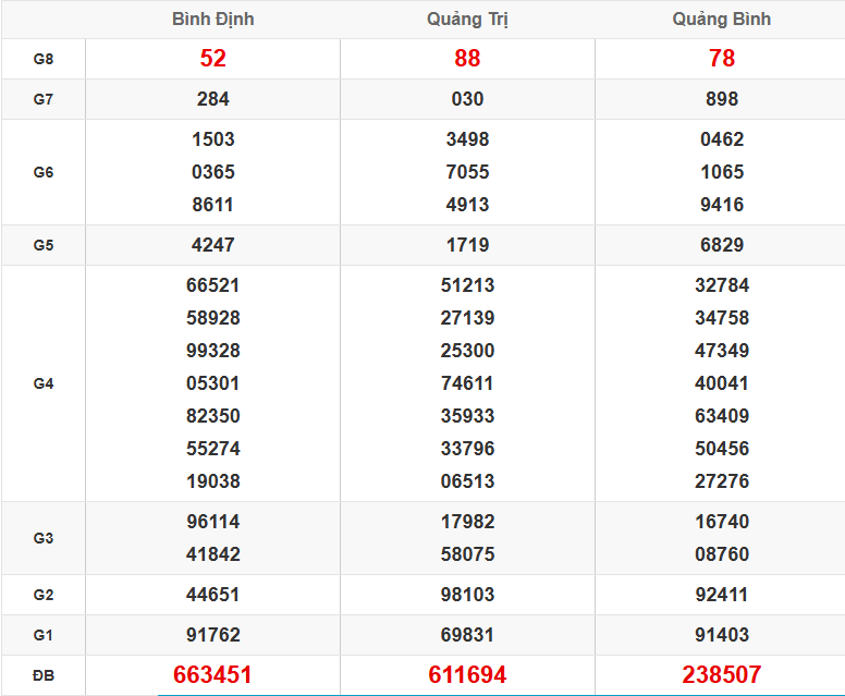 💰 Thống kê giải tám Bình Định: 61 - 88 - 30 - 73 - 54 - 28 - 50