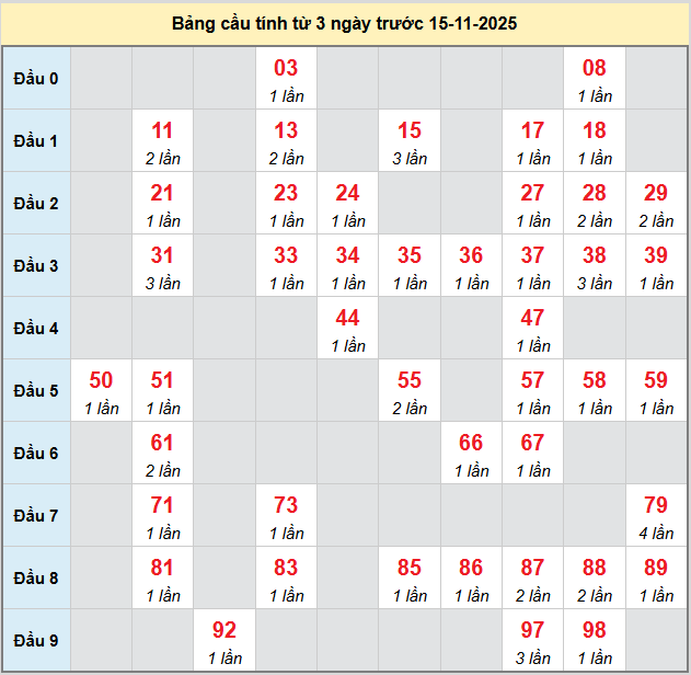 Bạch thủ rơi 3 ngày lô XSDNO 15/11/2025