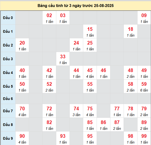 Thống kê XSTTH ngày 25/8/2025: