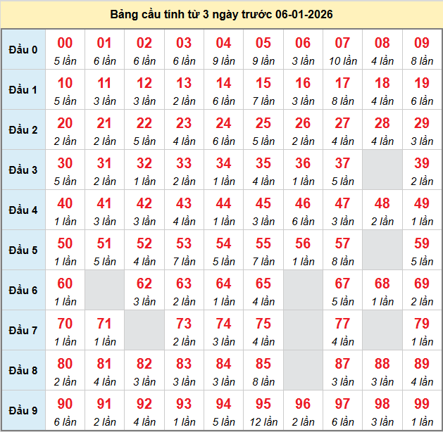 Bảng tần suất loto miền Bắc 06/01/2026