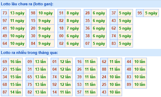 ⇒ Xem bảng tần suất lô tô các cặp số từ 00 đến 99 của đài miền Bắc trong tháng tại: Thống kê lô cặp