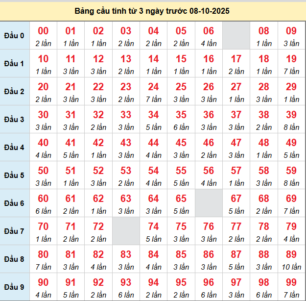 Thống kê miền Bắc hôm nay sẽ đưa ra cho người chơi những bộ số về trong thời gian gần đây để lựa chọn cặp số may mắn ngày 08/10/2025, cụ thể: