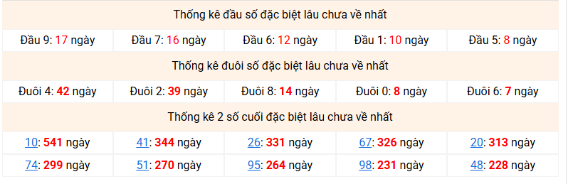 💰 Thống kê 2 số cuối GĐB lâu về nhất tính đến hôm nay: 10 - 41 - 26 - 67 - 20