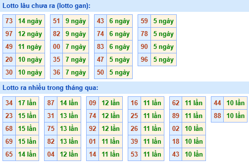 💰 Lô tô gan lâu ra nhất: 73 - 97 - 49
