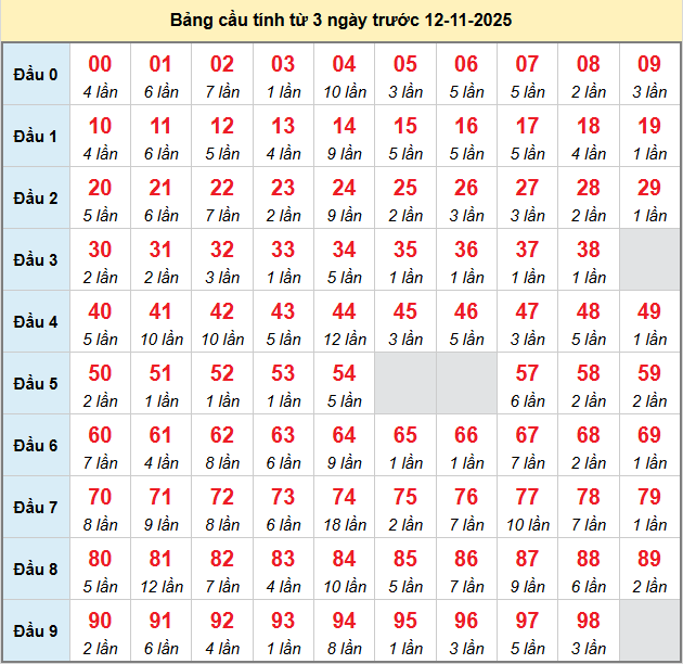Thống kê miền Bắc hôm nay sẽ đưa ra cho người chơi những bộ số về trong thời gian gần đây để lựa chọn cặp số may mắn ngày 12/11/2025, cụ thể: