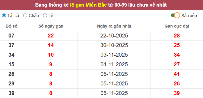 Bảng lô gan miền Bắc lâu chưa về tính đến 14/11/2025